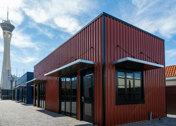 A Las Vegas developer has built a project in the Arts District area that is designed to look like converted shipping containers filled with food-and-beverage outlets.