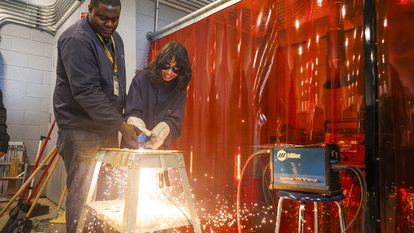 CHICAGO — Sparks flew from the hands of 13-year-old Tristan Williams to the concrete floor. Wearing gloves, goggles and a welding jacket, he maneuvered a plasma cutter above a thin sheet of metal. Beside him, a few students gasped.