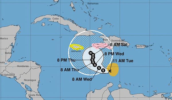 Haiti and the Dominican Republic could see 5 to 10 inches of rain through Friday, enough to cause dangerous mudslides and flooding to the mountainous island of Hispanola shared by the two nations. Jamaica and Puerto Rico could see 1 to 3 inches of rain through Friday, enough to cause flash flooding in Puerto Rico, the hurricane center said.