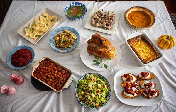 The menu has a familiar cast of characters — recipes include cranberries, pumpkin and sweet potatoes — but with unexpected twists. Food writer Sono Motoyama, for instance, puts a French spin on baked sweet potatoes by topping them not with the expected marshmallows but creme fraiche, while food editor Gretchen McKay uses Libby's canned pumpkin to fill homemade ravioli instead of pie.