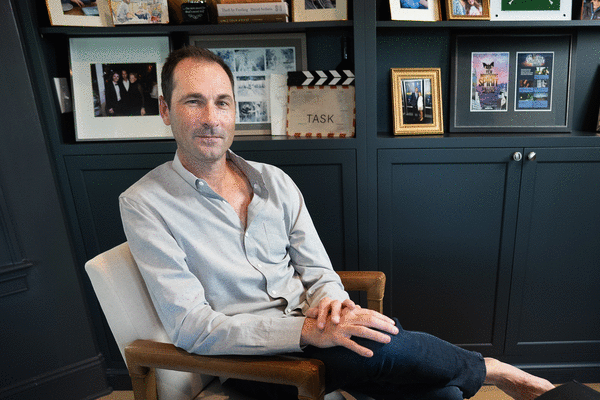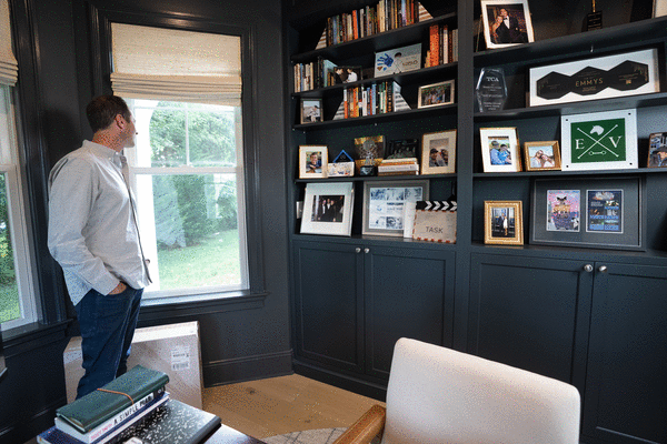 On his desk sat Arthur Miller’s "All My Sons" and other plays (a genre he hasn’t yet tried to produce, but loves to read) next to several marble composition notebooks, full of scenes that he writes by hand. Behind his chair, towering shelves displayed family photos, mementos from TV sets, a framed invite to the 73rd Emmy Awards and many accolades recognizing his 2021 hit "Mare of Easttown."