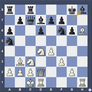 Today we have a real challenge for you. White has an attacking position. That should be clear. The question is what is the best way to proceed? The game started with a Dragon Sicilian 1.e4 c5 2.Nf3 g6 3.d4 cxd4 4.Nxd4 Nf6 5.Nc3 Nc6 6.Be3 Bg7 7.Bc4 0–0 8.Bb3 d6? (Too slow. Black has to play the thematic equalizing move 8...d5!)9.f3 a6? (Again, too slow. He needs to be more aggressive with 9...Qa5)10.Qd2 Qc7 11.0–0–0 Na5 (Now a typical anti-Dragon attack is launched by White.)12.h4 Bd7 13.h5 Rfc8 14.hxg6 hxg6 15.Bh6 Bh8 (SEE DIAGRAM) Your task is to figure out the first key move, but several follow-up moves.