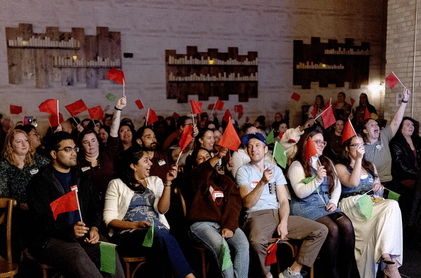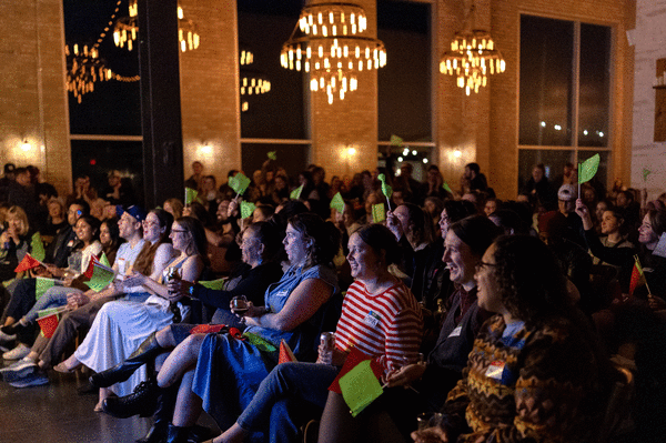 Attendees wear green or red name tags to signal their openness to romantic connections. Recently they’ve added a sticker system to indicate whether attendees are interested in men, women and/or people of all genders, which was suggested by the Pitch community, Carper said.