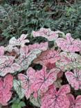 Heart to Heart Rose Glow caladium is a sun or shade selection and prolific in the quantity of leaves produced. Rose Glow is a most appropriate name in that it does seem to glow, even more so with chartreuse partners in proximity.