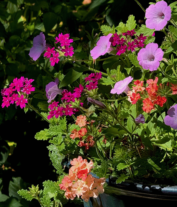 The Superbena Verbena series needs plenty of sun. Oddly I am entering the time of the year that I have the most sun. I have trees overhead, and now the angle of the sun is perfect, and the trees protect during radiative freezes.