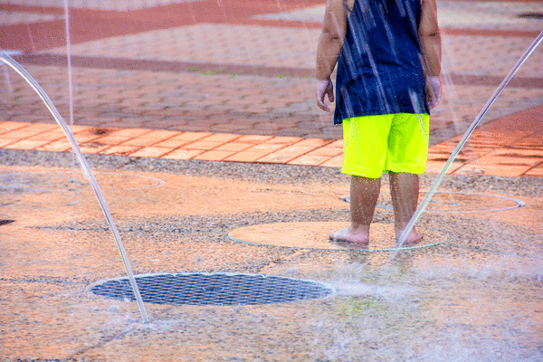 Kid and Kid’s Friend walk off into the waterpark.