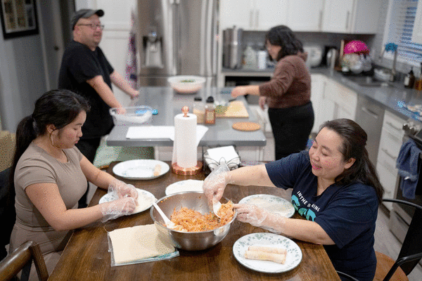 For many years until his passing in 2022 of prostate cancer, Dang led his family every Thanksgiving dinner with a prayer and a speech, reminding them of the blessings that led them to the States. Now Touvi, their eldest, leads the prayer, offering a few reflective words before digging into the turkey. Always be grateful.