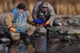 They spend hours standing in murky water, stooping and squatting over buckets and pans, shoveling and sifting with hand tools and human muscle, processing hundreds of pounds of rocks, gravel, sand and mud.