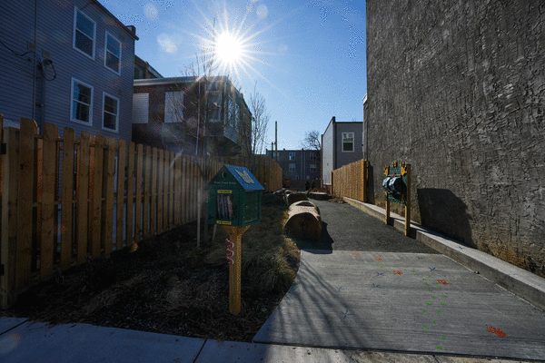 Residents also said they didn’t have open space they could enjoy. So the Live and Learn project transformed a small strip of unused land into a pocket park. It has seating and a little library. There’s a puzzle and matching game and wheels children can turn to create their own animals and tell stories based on their creations.