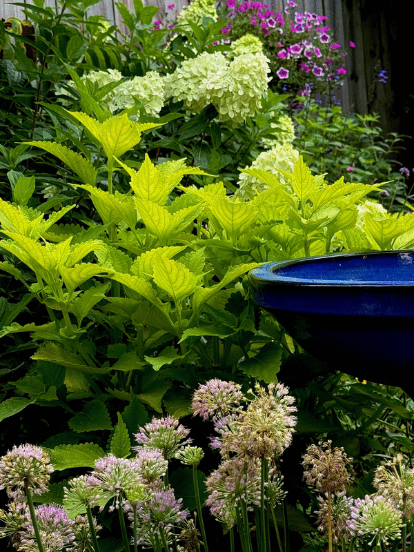 I have one bed where I like to strategically place five Lime Time coleus about 4 or 5 feet apart. As they mature through the season, it’s like they become Lime Time Lanterns illuminating their partners.