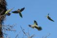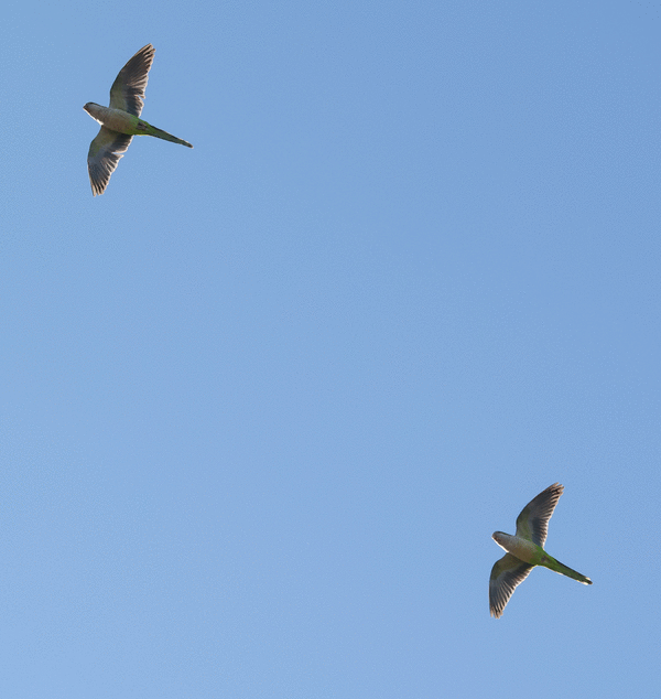 The parakeets are also unusual in that they don’t compete with other species for a place to raise their young. Other nonnative species, such as European starlings and house sparrows, nest in crevices and cavities like roof overhangs, usually pushing out native species like bluebirds.