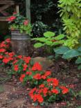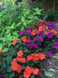 I plant the Soprano impatiens every year and love mixing the Soprano Red, Orange and Salmon, creating what I consider a Santa Fe mix. The color is nonstop all summer and these vibrant colors light up the shade garden.