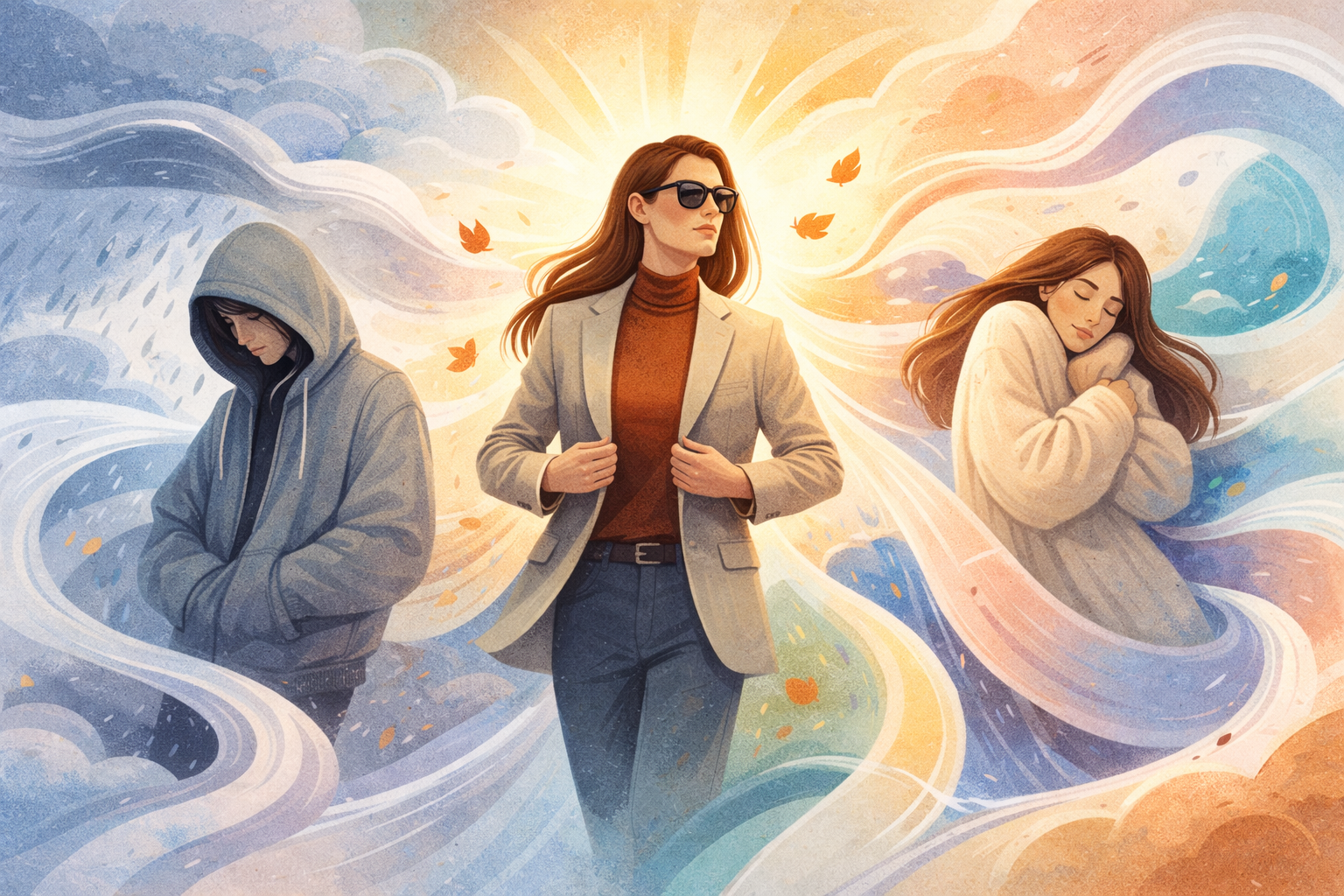 Recognizing invisible weather begins with observation. Many individuals cycle through predictable emotional uniforms: the soft weekend sweater, the decisive blazer, the neutral fatigue outfit, the layered travel look.