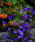 Susan Middleton Turner in zone 9 Miller County, Georgia, gets my vote for award-winner as she uses Supertunia Mini Vista Indigo petunias in coconut banister baskets along the front of her home in a spectacular monoculture application. Young’s Plant Farm Annual Garden Tour in Auburn, Alabama, used them at the front of a raised bed with rudbeckias, vinca and guara showing how blue enhances all other colors.