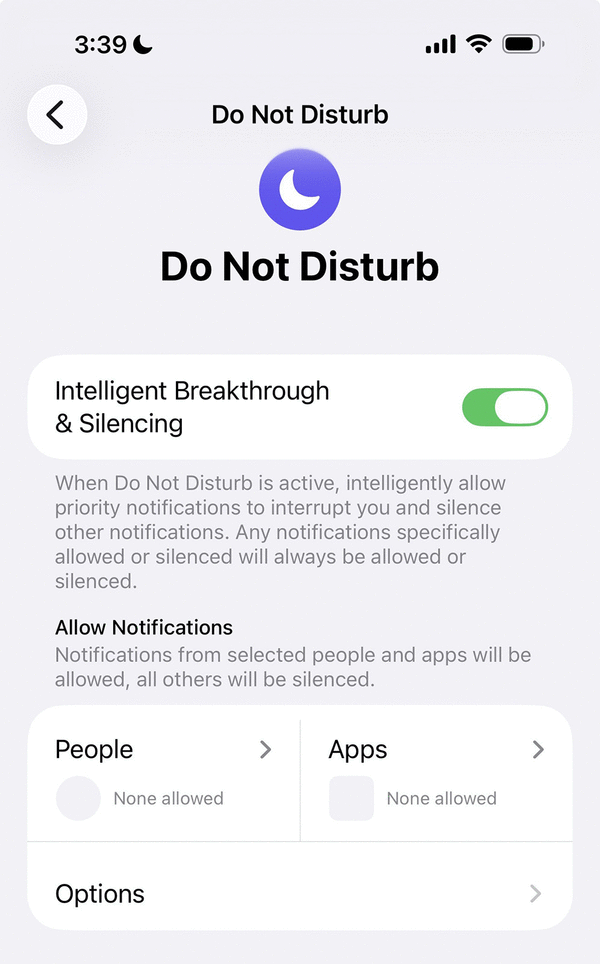 DND is a nice way to limit the disturbances when you need to concentrate or need some silence. There are options you can configure to allow calls or messages from certain people or notifications from certain apps to ring through, while blocking everything else.