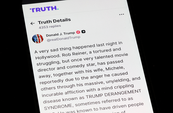 Posting on his Truth Social platform, Trump claimed the killings were "reportedly due to the anger (Reiner) caused others through his massive unyielding and incurable affliction with a mind crippling disease known as TRUMP DERANGEMENT SYNDROME."