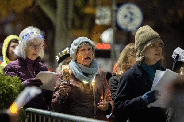 By contrast, the carolers didn’t encounter much opposition from law enforcement. The group got car honks from passing drivers that sounded positive. There was also applause from Andrew Steiger, an attorney who was waiting for a ride from a friend and saw the carolers when they reached 555 Capitol Mall.