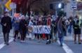 Susan Rainier of Davis walked with her dog Bakos and her seven-year-old grandson Michael Esordienti. Asked what she hoped to teach her grandson from attending a protest, Rainier said that she’d brought her granddaughter to another one and that it was “just to show that peaceful protest is a human right.”