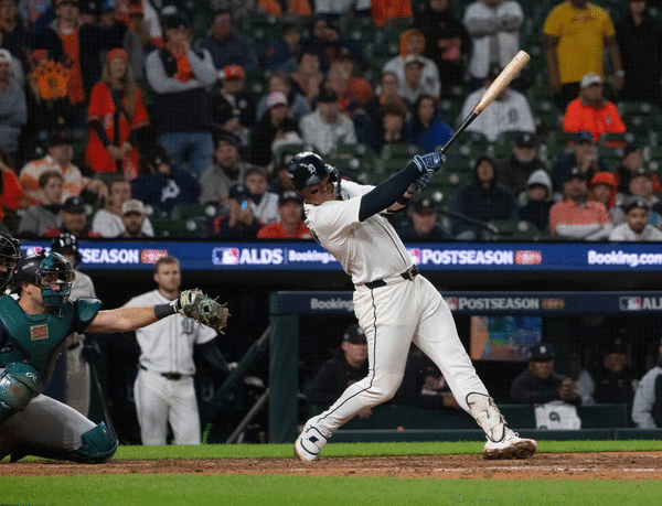Hitless in the series, Eugenio Suárez clobbered a solo homer off Flaherty to lead off the inning. After walking Crawford, Flaherty came back to strike out Robles. With his starter already at 76 pitches, Tigers manager A.J. Hinch had seen enough. He went to his bullpen. Veteran right-hander Tommy Kahnle, the man of many change-ups, walked Crawford and struck out Arozarena. But Raleigh made it 4-0, sending a hard ground ball into center field to score Dominic Canzone.