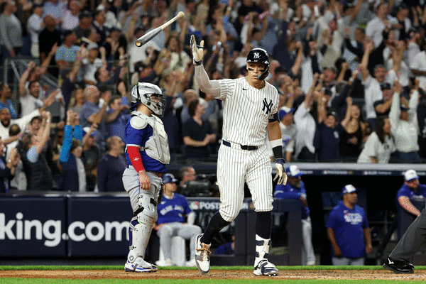 Judge, whose prior postseason struggles have been well-documented, rose to the occasion, turning on a 99.7-mph, inside fastball from Toronto Blue Jays reliever Louis Varland. With two runners on, one out and the Yankees down — 2-0 in the ALDS and 6-3 in the fourth inning of a do-or-die Game 3 — Judge could only watch and wait as his lumber sent a towering fly-ball deep into the Bronx night.