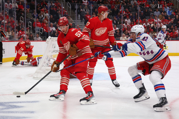 Panarin scored his third goal, at 7:29, after Mika Zibanejad gathered the puck in the corner and fed Panarin alone near the hashmarks for a one-timer. Lafreniere quickly made it 4-1, with his second goal, as Conor Sheary found Lafreniere skating behind the Wings' defense, and breaking in alone on goaltender Cam Talbot (21 saves).