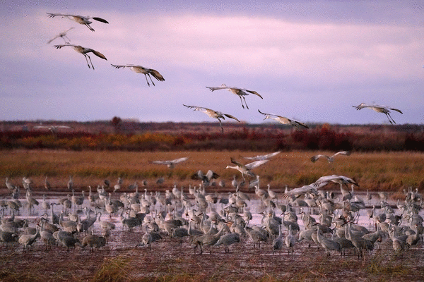 GRANTSBURG, Wis. — Sandhill cranes came in by the dozens, and then dozens more, to the grassy marsh of Crex Meadows Wildlife Area. They had spent the day feeding in nearby fields and now were arriving in large numbers at a favored roosting spot.