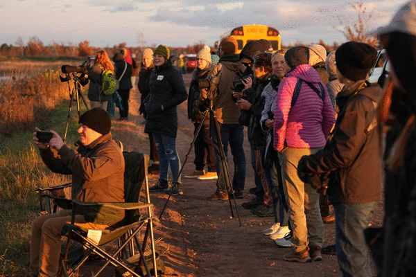 Last Wednesday, the spectators stood on an interior road straddling a Crex marsh where the cranes land and sit tight for the night. Some people were with employees from the International Crane Foundation, based in Baraboo, Wis., who were in town to partner with the Crex Meadows Wildlife Area visitor center for a guided tour. It sold out.
