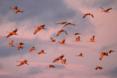 Birds, grasses, water, people — all were tinted in yellows and pinks in the sun’s fading light. A crane foundation employee estimated that about 1,500 sandhills had settled in. At first light, they would lift off to feed once again.